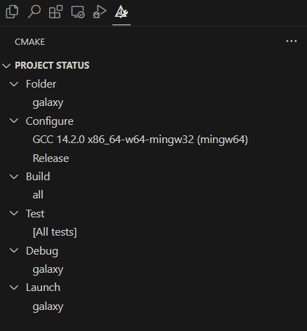 First, open the CMake Tools panel and select the MSYS2 - mingw64 GCC compiler under the Configure option, as shown in the image. Then, the extension will automatically configure your project based on CMakeLists.txt.