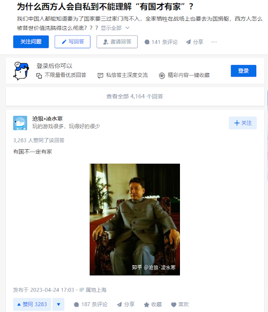 Question: Why are Westerners so selfish that they can't understand "Only with a country, can there be a home"?